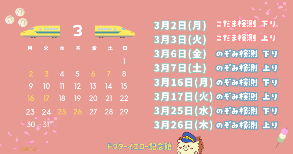 2026年3月 ドクターイエロー予想運行日