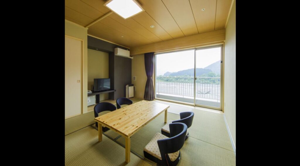 川根温泉ホテルは大井川のすぐ近くに建っているホテルで、客室の窓からは川や山の自然豊かな景色を楽しむことができます。